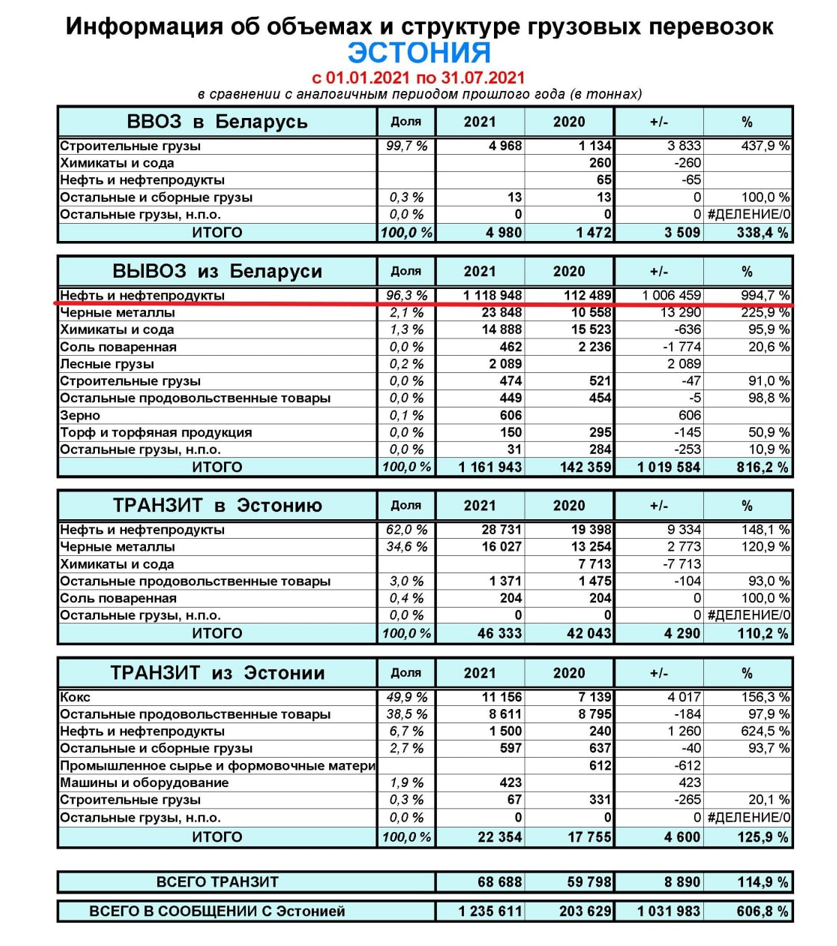 Следует отметить, что в 2021 году объемы перевозок беларуских и российских грузов от Белорусской железной дороги значительно выросли за счет вывоза из Беларуси приблизительно 1,6 млн.тонн нефтяных грузов. А в текущем году, по оценкам Operail, выполнение указанного решения приведет к снижению грузооборота на 65-70%.