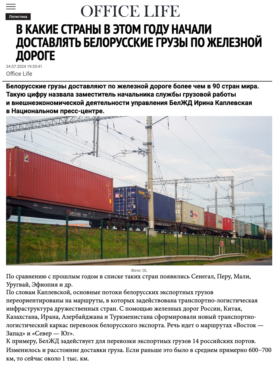 В реальности почти весь экспорт БЖД следует через 20 портов России, а расстояние перевозок из заявленных около 1000 км — это только в порты Санкт-Петербурга, остальное гораздо дальше. Тем более на маршрутах в/через упомянутые данным чиновником страны «…Китая, Казахстана, Ирана, Азербайджана и Туркменистана сформировали новый транспортно-логистический каркас перевозок белорусского экспорта. Речь идет о маршрутах «Восток — Запад» и «Север — Юг» (мы освещали многократно, например здесь или здесь).